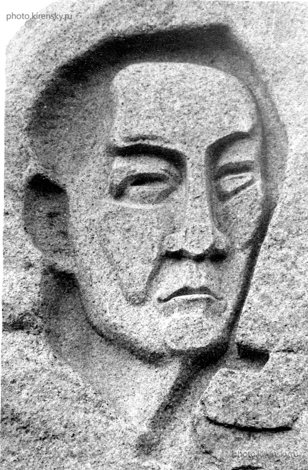 Портрет академика Л.В. Киренского, высеченный на памятнике, который выполнен из красноватого бутового камня, по форме напоминающего скалу «Перья» заповедника «Столбы» (3 м; 2,5 м). Памятник установлен 4 ноября 1974 года на его могиле в Академгородке Красноярска.