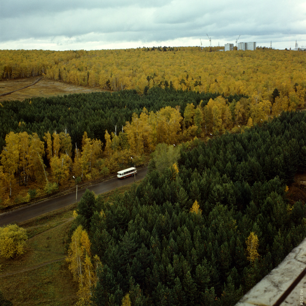 Дорога на Академгородк со стороны Студенческого городка. Справа корпуса общежитий университета.