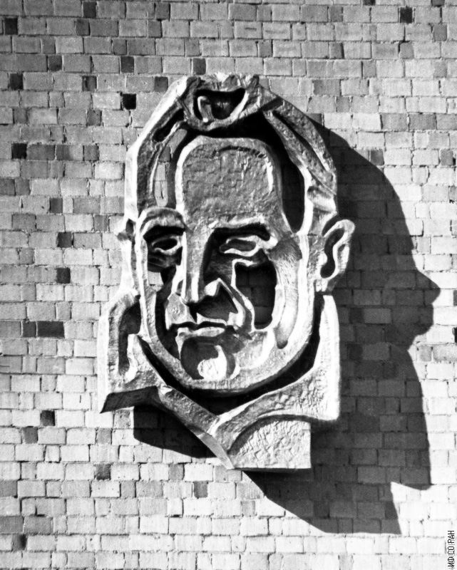 Горельеф Королева С.П. и Ландау Л.Д. на здании института, заказанный Киренским Л.В. в 1966 году скульпторам Силису Н.А. и Лемпорту В.С., творчество которых Леонид Васильевич очень ценил, фото 1973 года.