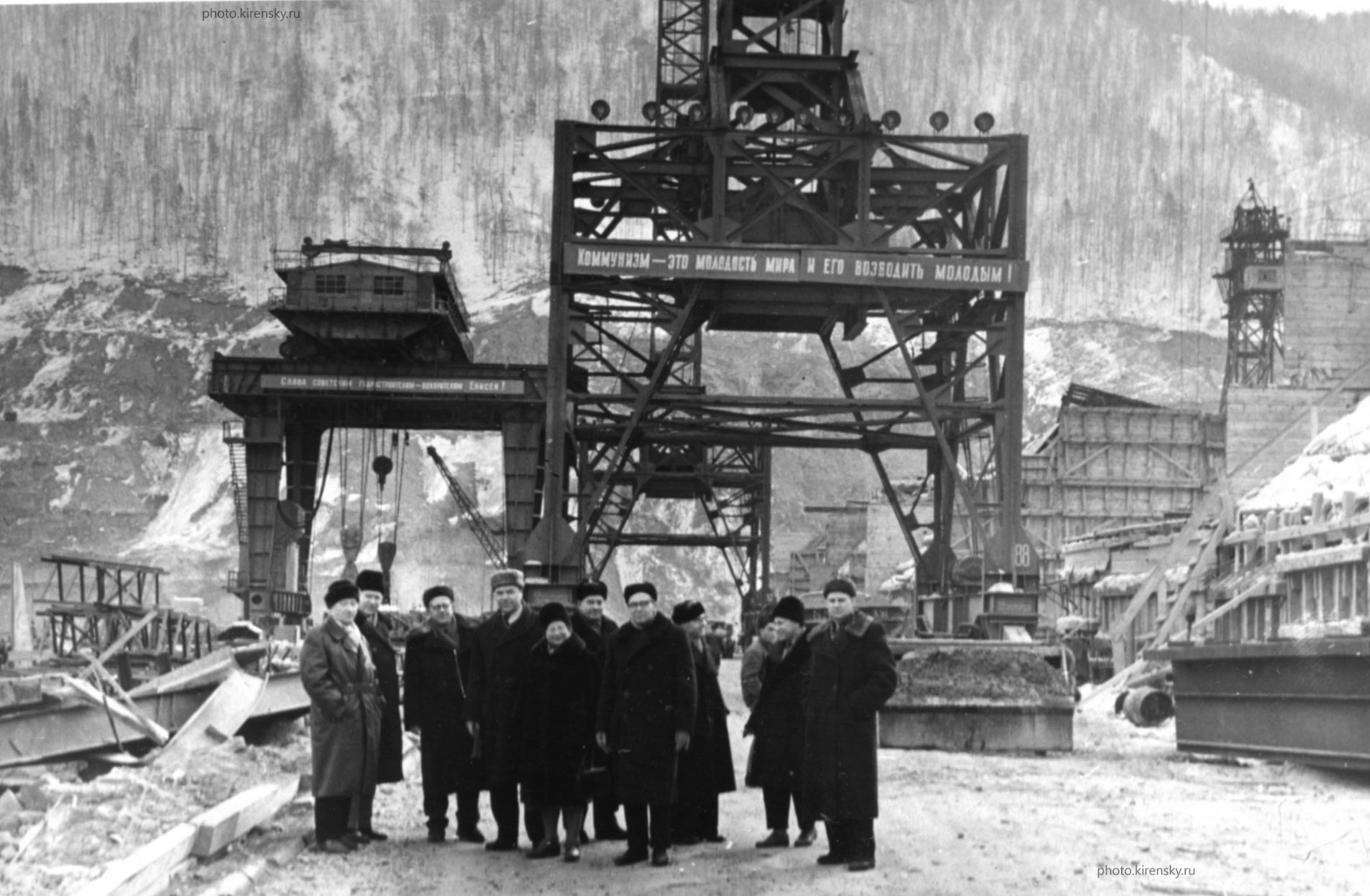 Киренский Леонид Васильевич, директор Института физики Сибирского отделения Академии наук СССР, Дрокин Александр Иванович, заместитель директора по научной работе Института физики, Коршунов Анатолий Васильевич, заведующий лабораторией молекулярной спектроскопии Института физики, посетили с экскурсией строительство Красноярской ГЭС с комиссией Сибирского отделения АН СССР в 1964 году. Киренский – крайний слева, Дрокин - четвертый слева, Коршунов – справа от дамы.
