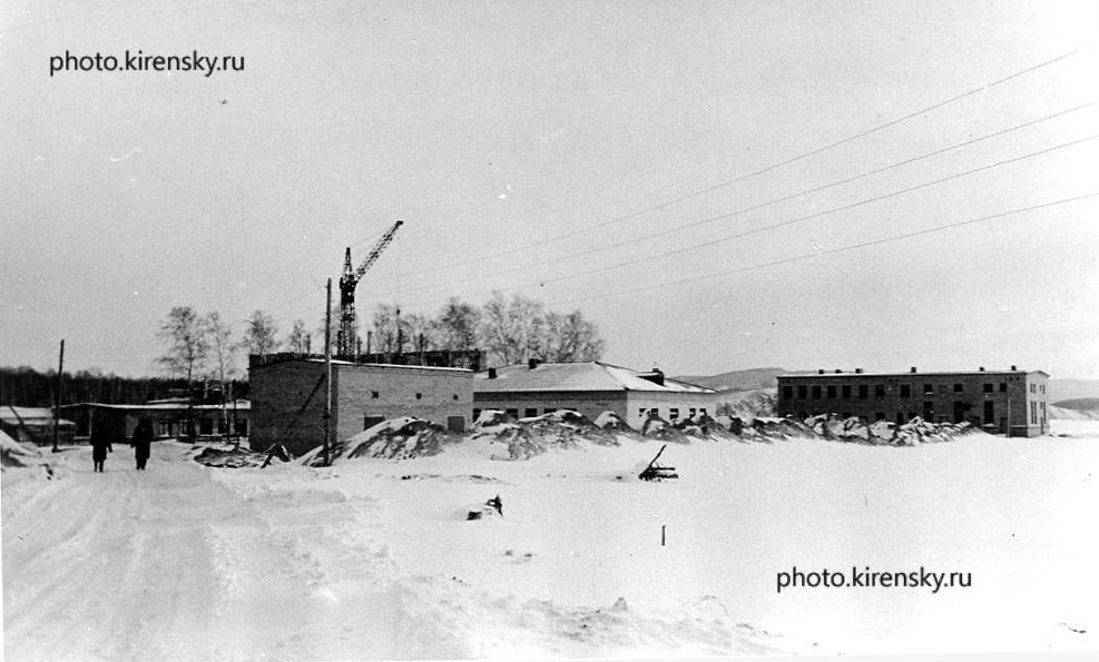 Строительство центральной распределительной подстанции (слева), магнитометрического павильона и далее криогенной станции. Снимок 1963 года.