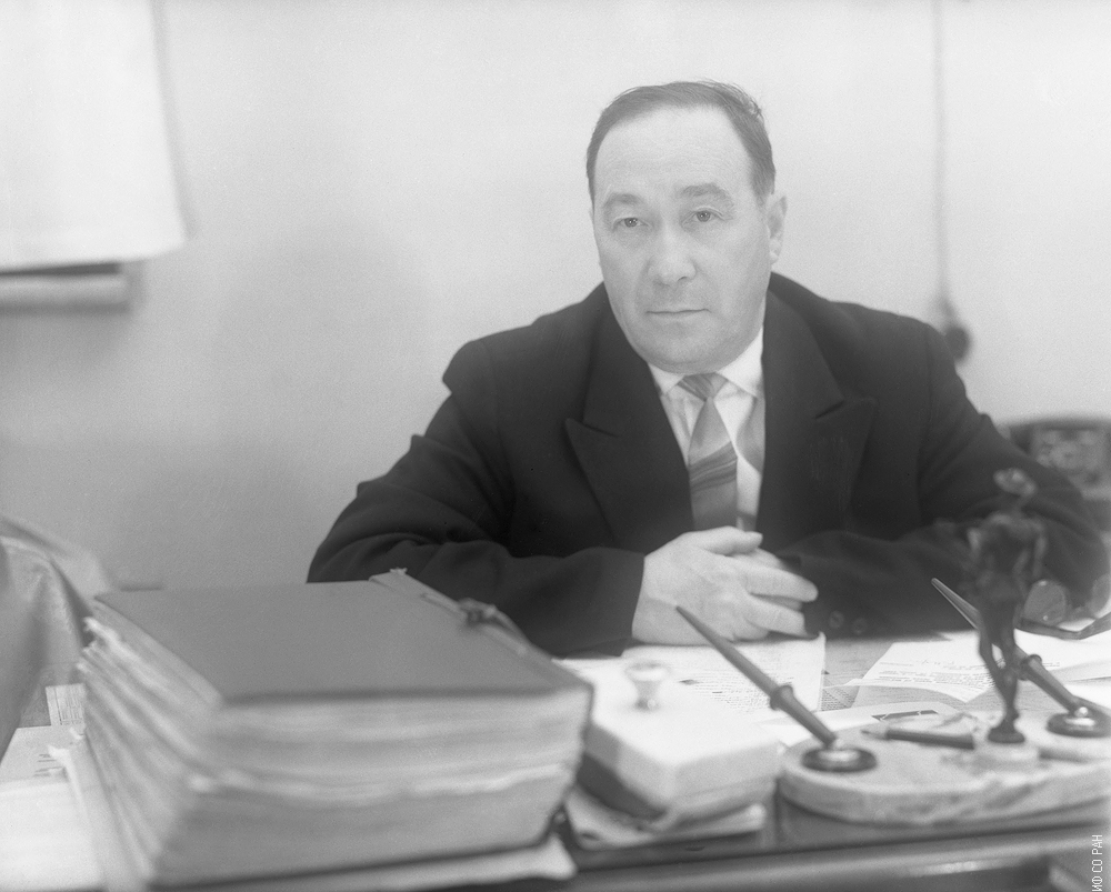 Академик Леонид Васильевич Киренский, организатор и первый директор Института физики Сибирского отделения Академии наук СССР (ИФ СО АН СССР), в своем рабочем кабинете. Фото 1968 года. Красноярск.