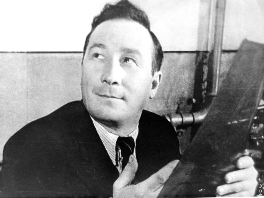 Академик Л.В. Киренский, организатор и первый директор Института физики Сибирского отделения Академии наук СССР (ИФ СО АН СССР), в первые годы работы в Красноярском государственном пединституте, снимок 1942 года.