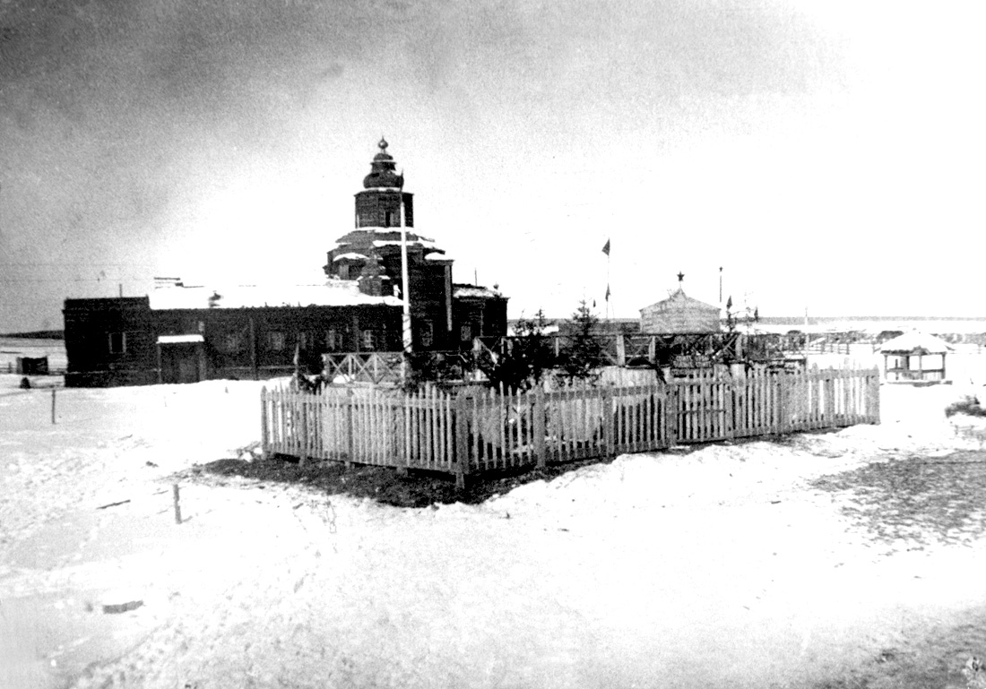 Село Амга (Якутия), где родился и жил до 1919 года академик Киренский Л.В., организатор и первый директор Института физики Сибирского отделения Академии наук СССР (ИФ СО АН СССР). Памятник жителям села, погибшим во время Гражданской войны (1918-1922 гг.). Снимок сделан в 90-х годах ХХ века.