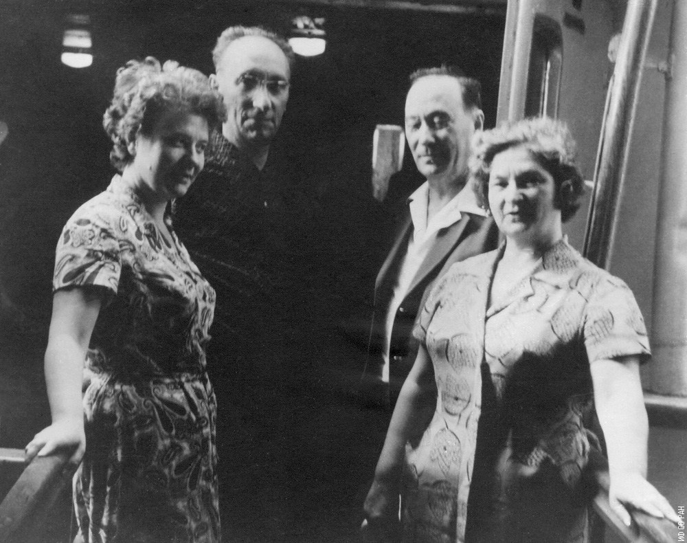 С 24 июня по 7 июля 1962 года Институтом физики Сибирского отделения Академии наук СССР (ИФ СО АН СССР) было организовано и проведено Всесоюзное совещание по вопросам ферро- и антиферромагнетизма. Совещание проводилось на теплоходе «А. Матросов», рейс Красноярск – Дудинка - Красноярск. Л.В.Киренский возродил в Красноярске опыт академика А.Ф. Иоффе по проведению, так называемых, "плавучих" научных симпозиумов, совещаний, конференций, что позволяло ученым общаться и обсуждать проблемы почти круглосуточно. На снимке: слева академик А.Ф. Иоффе с супругой, Л. В. Киренский с супругой справа.