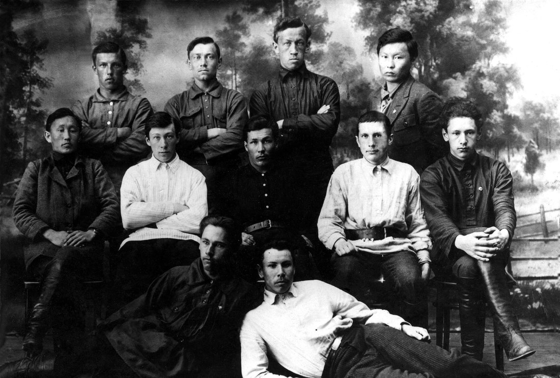 Академик Киренский Л.В. (сидит второй слева), организатор и первый директор Института физики Сибирского отделения Академии наук СССР (ИФ СО АН СССР), среди учителей Олекминской средней школы. Снимок сделан в 1930 году.