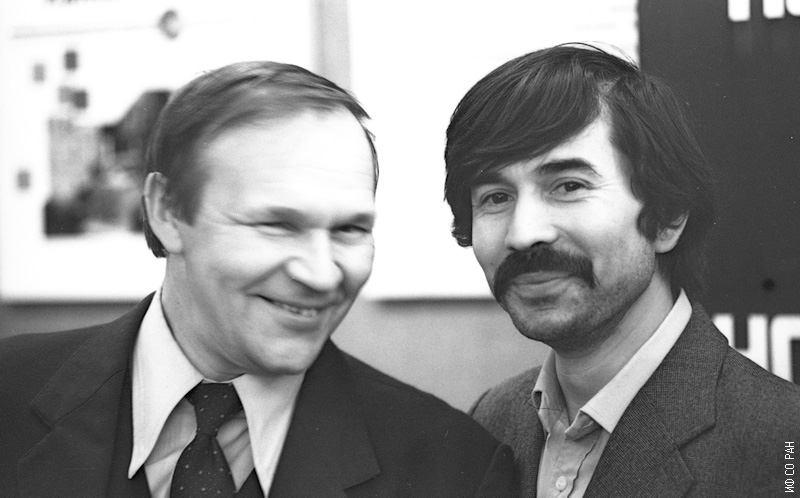 Бабаев В.А. (слева) и Караев Н.Д., сотрудники Института физики им. Л.В. Киренского Сибирского отделения Академии наук СССР. (Одна из последних фотографий Вячеслава Александровича Бабаева). Снимок 1988 года. Красноярск.