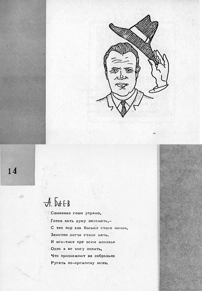 Дружеский шарж Баева А.И. из книги шаржей "Музей друзей", первая часть которой вышла в 1967 году. Авторами ее являются научные сотрудники Института физики им. Л.В. Киренского Сибирского отделения АН СССР О.А. Баюков и Н.С. Чистяков. Книга вышла малым тиражом (всего 100 экземпляров) и моментально разошлась среди персонажей книги, сотрудников института и была подарком авторов к юбилею института (10 лет).