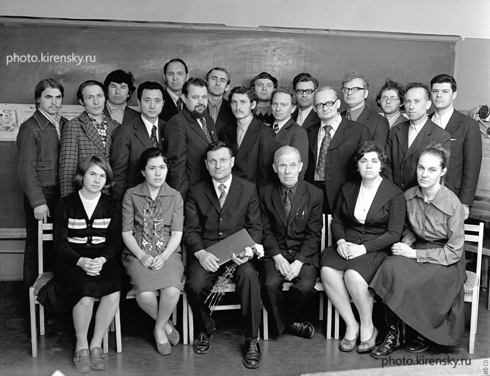 Сотрудники лаборатории магнитных монокристаллических пленок Института физики им. Л.В. Киренского Сибирского отделения Академии наук СССР. В первом ряду сидят (слева направо): Решетникова Н.Г., Черкашина Л.В., Пынько В.Г. – заведующий лабораторией, Овсянников М.А., Репина Н.М., Квеглис Л.И., Второй ряд (слева направо): Савченко В.И., Долгарев А.П., Кан С.В., Людвик Э.Ж.-Р., Бессмертных С.А., Зуев В.М., Мушаилов Э.С., Богайчук В.И., В третьем ряду (слева направо): Бахридинов Абдимаджид, Комалов А.С., Бабкин Е.В., Артемьев Е.М., Поцелуйко А. А., Киселев Н.И., Минцев Н.Н., Аннаоразов М.П. Фото 1977 года. Красноярск.