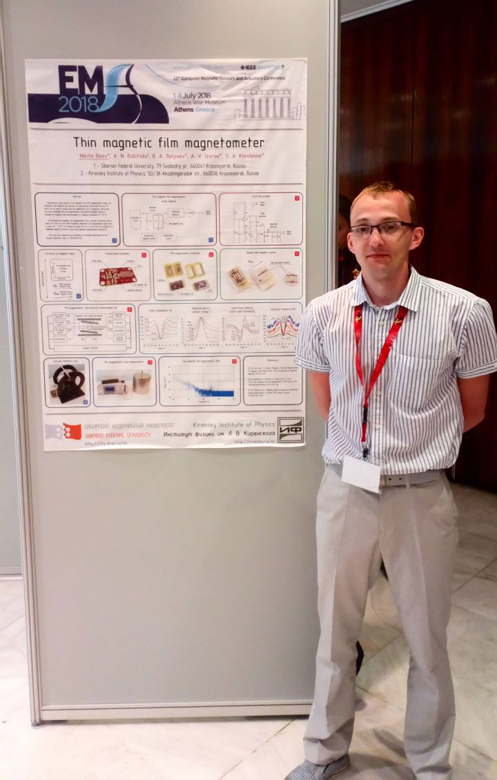 2018 год. Никита Михайлович Боев, сотрудник Института физики им. Л.В. Киренского Сибирского отделения Российской академии наук, на 12-ой Европейской конференция по магнитным сенсорам и актуаторам (EMSA-2018). Греция. Афины.