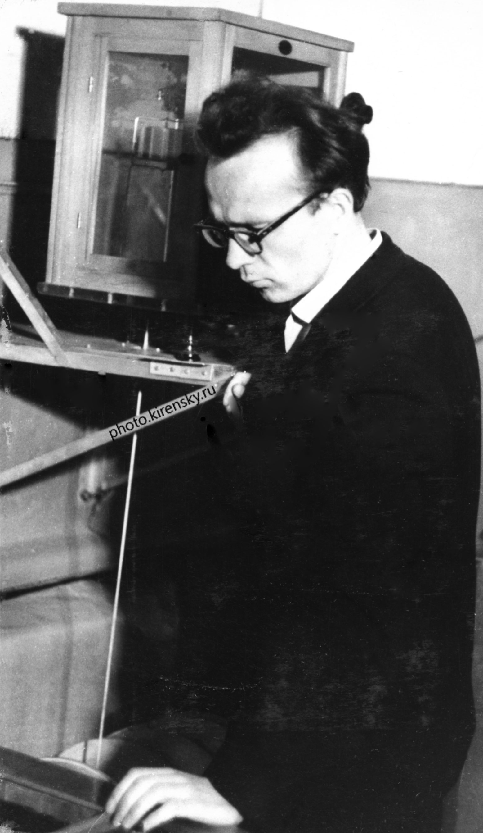 Чихачев Владимир Андреевич, сотрудник лаборатории горных пород и геофизики Института физики Сибирского отделения Академии наук СССР (ИФ СО АН СССР), исследовал возникновение химической намагниченности применительно к горным породам, фото 1965 года. Красноярск.