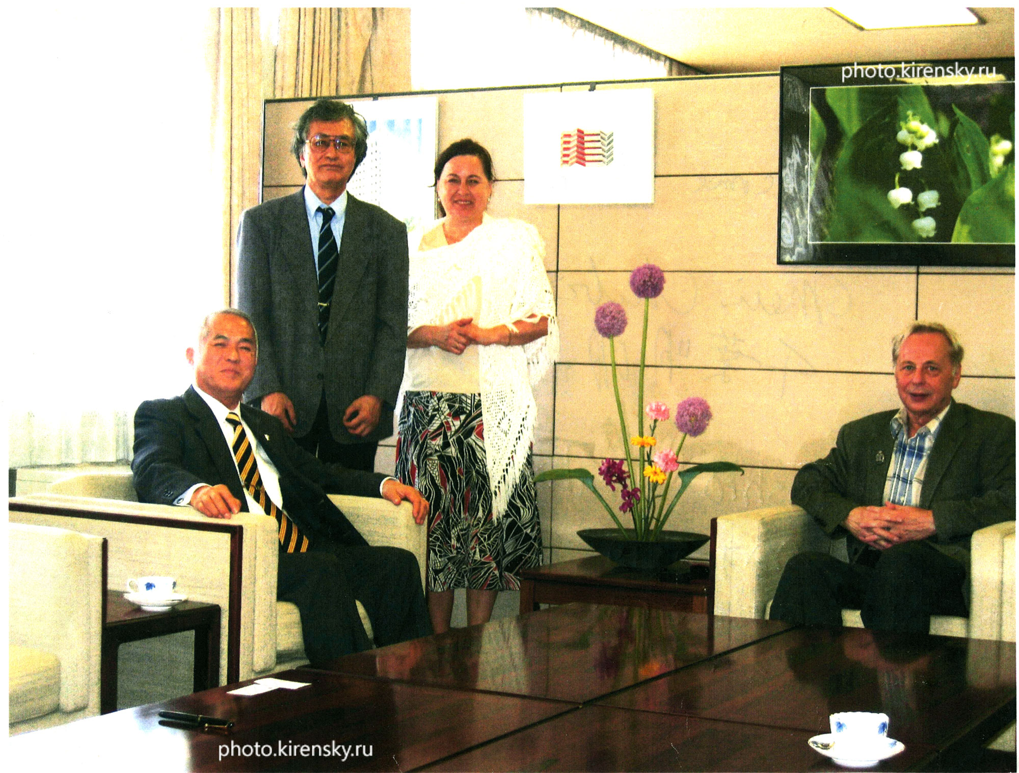 6 июня 2006 года. Г.А. Петраковский, заведующий лабораторией резонансных свойств магнитоупорядоченных веществ Института физики им. Л.В. Киренского Сибирского отделения Российской академии наук (ИФ СО РАН) (крайний справа), с супругой в университете Фукуи на встрече с ректором университета во время проведения семинара по магнетизму. Слева - ректор университета T. Suzuki и профессор университета M. Chibo. Япония. Фукуи.