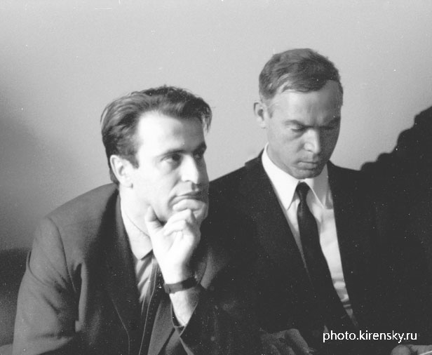 1976 год. Фиш Абрам Михайлович (слева), старший научный сотрудник отдела биофизики и Золотухин Г.Е., заведующий лабораторией эмиссионной спектроскопии Института физики им. Л. В. Киренского Сибирского отделения Академии наук СССР, в конференц-зале института на одном из общефилософских институтских семинаров. Красноярск.