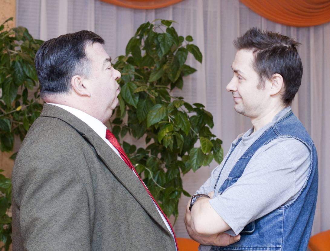 Геллер Ю.И. (слева) и Шабанов А.В., на семинаре отдела оптики Института физики им. Л.В. Киренского Сибирского отделения Российской академии наук (ИФ СО РАН), посвящённого 100-летнему юбилею Коршунова А.В., январь 2011 года. Красноярск. Академгородок, Дом ученых.