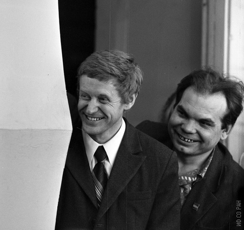Малаховский А.В. (слева), Гладченко А.М., сотрудники Институте физики им. Л.В. Киренского Сибирского отделения Академии наук СССР (ИФ СО АН СССР). Снимок 1976 года. Красноярск.