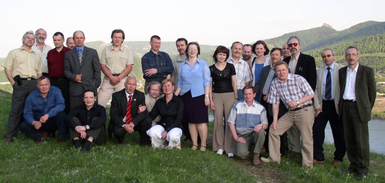 2003 год. Фото на память. Сотрудники лаборатории молекулярной спектроскопии Института физики им. Л.В. Киренского Сибирского отделения Российской академии наук (ИФ СО РАН) после воскресника в лаборатории. В первом ряду (слева направо): Сморгон С.Л., студент КГУ Чебунин Р., Маркевич Е.А., Жуйков В.А. Во втором ряду (слева направо): Назаров В., Шабанов А.В., Зырянов В.Я., Агеев А.Г., Герасимов В.П., Александровский А.С., Втюрин А.Н. В третьем ряду (слева направо): Крылов А.С., Мысливец С.А., Гуняков В.А. Красноярск.