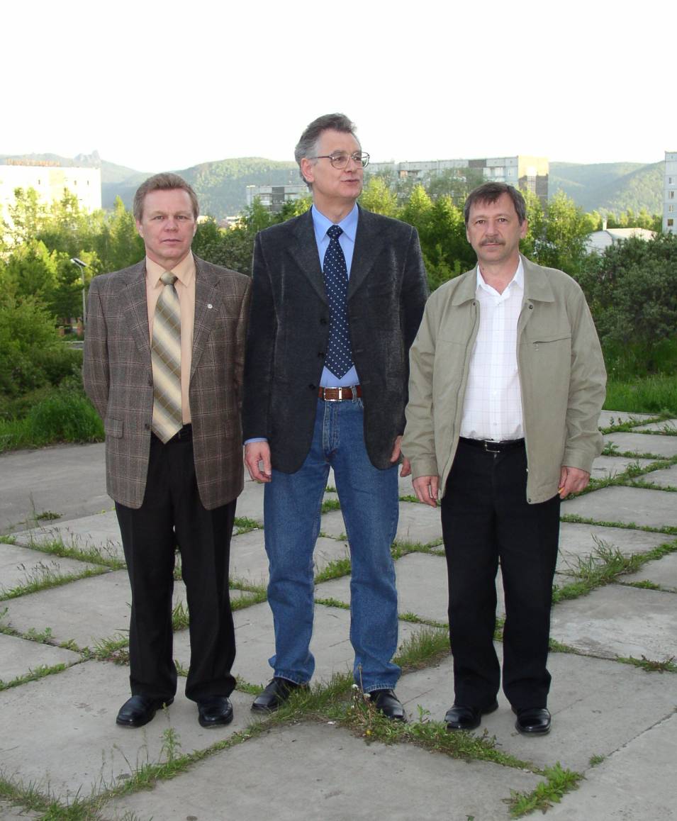 Фото на память. Сотрудники лаборатории молекулярной спектроскопии Института физики им. Л.В. Киренского Сибирского отделения Российской академии наук (в разные годы). Слева направо: Мысливец С.А., Назаров В., Вяткин В.П., Баранник А.В., Подопригора В.Г., Гуняков В.А., Ботвич А.Н. Снимок 2006 года.В день юбилея лаборатории. Красноярск.