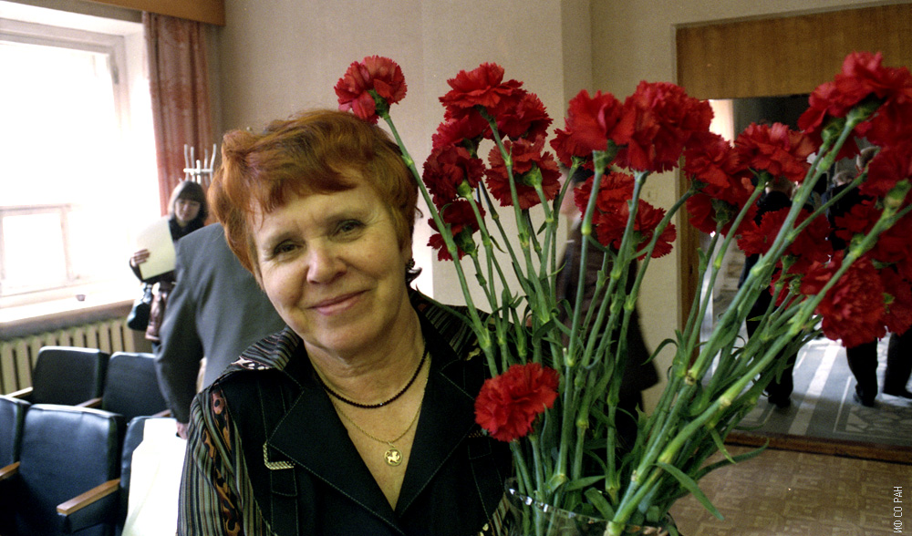 2009 год. Кармацкая Е. Д. в период подготовки к торжественному заседанию, посвященному 100-летию со дня рождения академика Л.В. Киренского, организатора и первого директора Института физики им. Л.В. Киренского Сибирского отделения Российской академии наук (ИФ СО РАН).