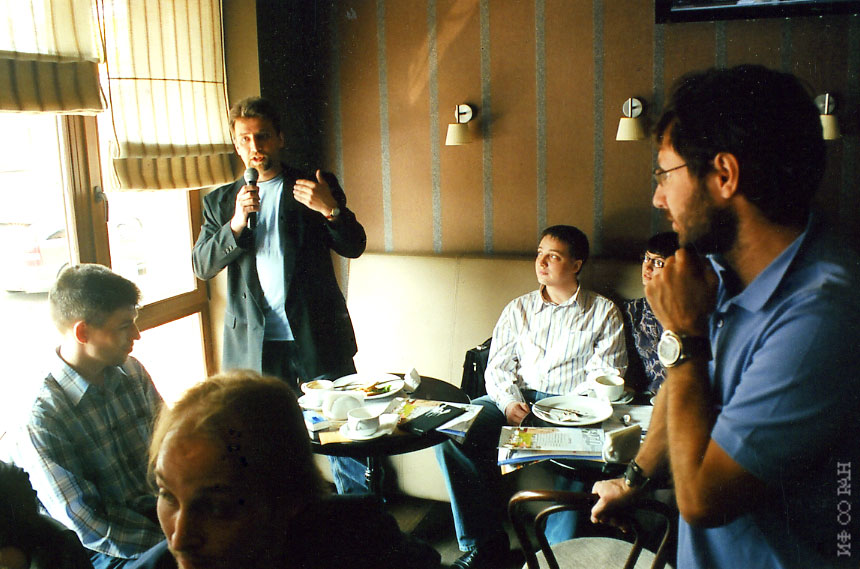 2007 год. Семинар Совета молодых ученых Института физики им. Л.В. Киренского Сибирского отделения Российской академии наук (ИФ СО РАН) в конференц-зале института. Слева направо: Варнаков С.Н., Пястолова Ю.В., Крылова С.Н., Булина Н.В Софронова С.Н., Музалевский К.В., Богданов Е.В., Комогорцев С.В., Красноярск.