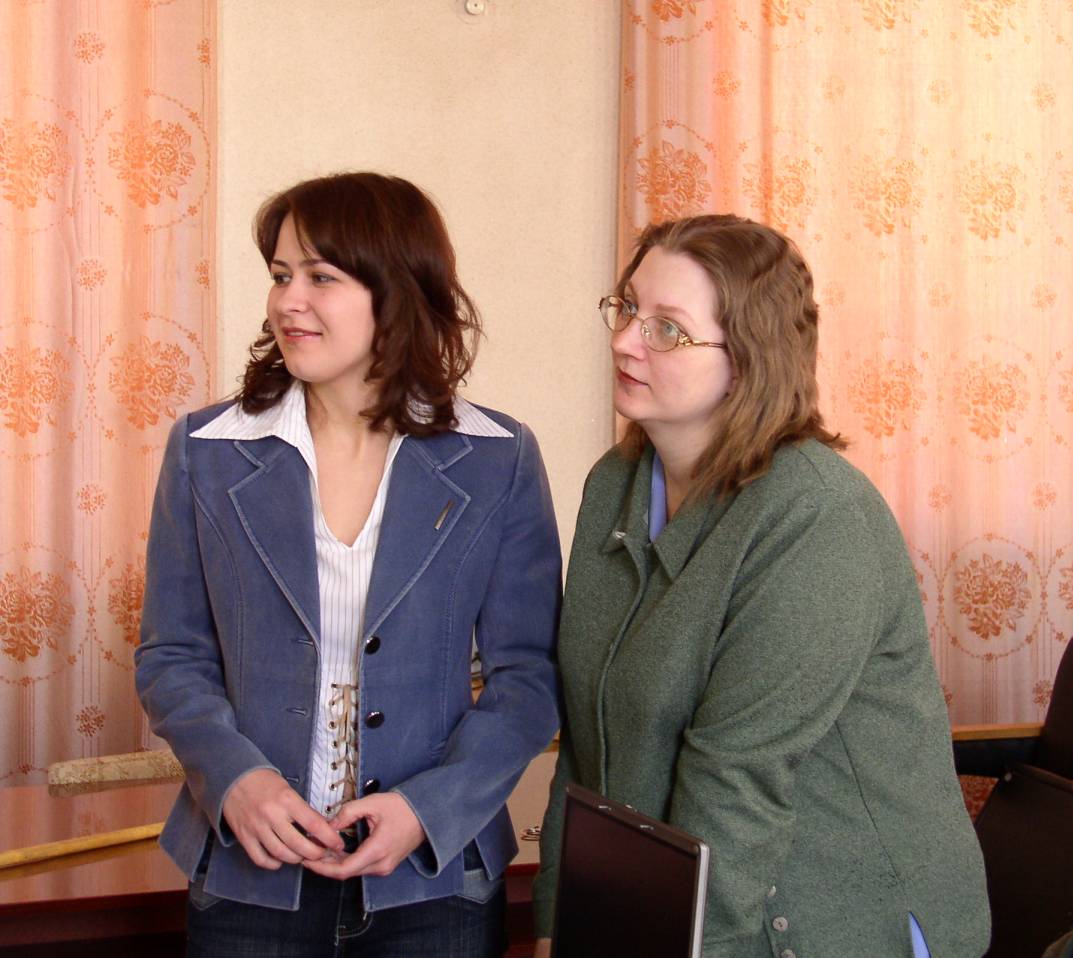 Крылова Светлана Николаевна и Пястолова Юлия Валентиновна младшие научные сотрудники лаборатории молекулярной спектроскопии Института физики им. Л.В. Киренского Российской академии наук (ИФ СО РАН), специалисты в области колебательной спектроскопии. Снимок 2008 года. Красноярск.