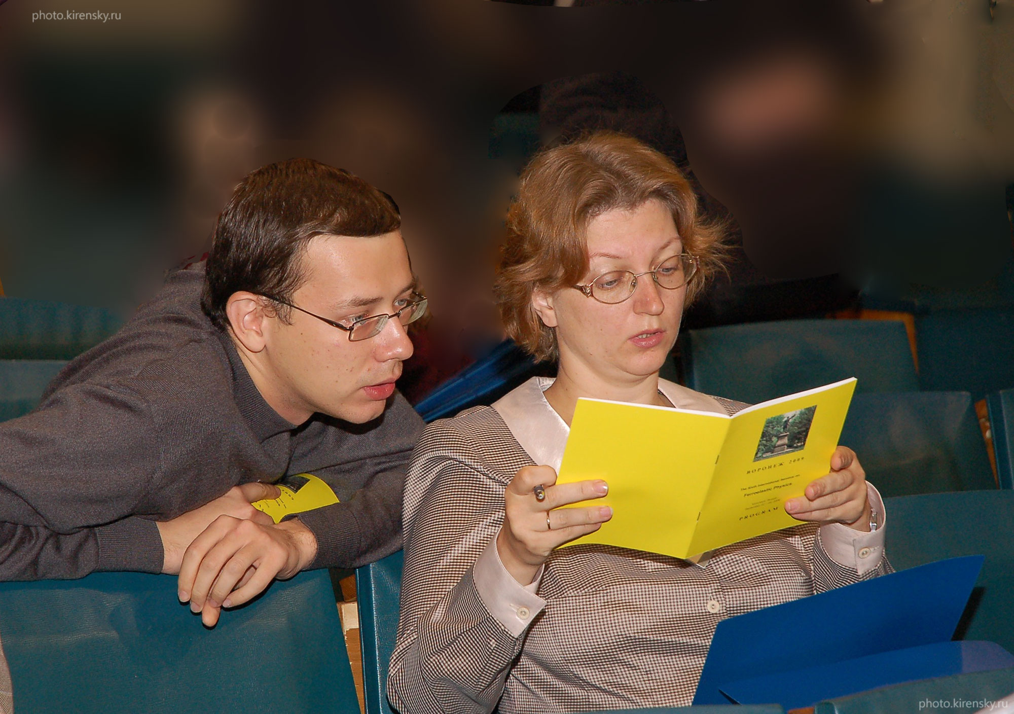 Жандун Вячеслав Сергеевич и Крылова Светлана Николаевна, сотрудники Института физики им. Л.В. Киренского Сибирского отделения Российской академии наук, на ученом Совете по защитам диссертаций в конференц-зале института. Фото 2010 года.