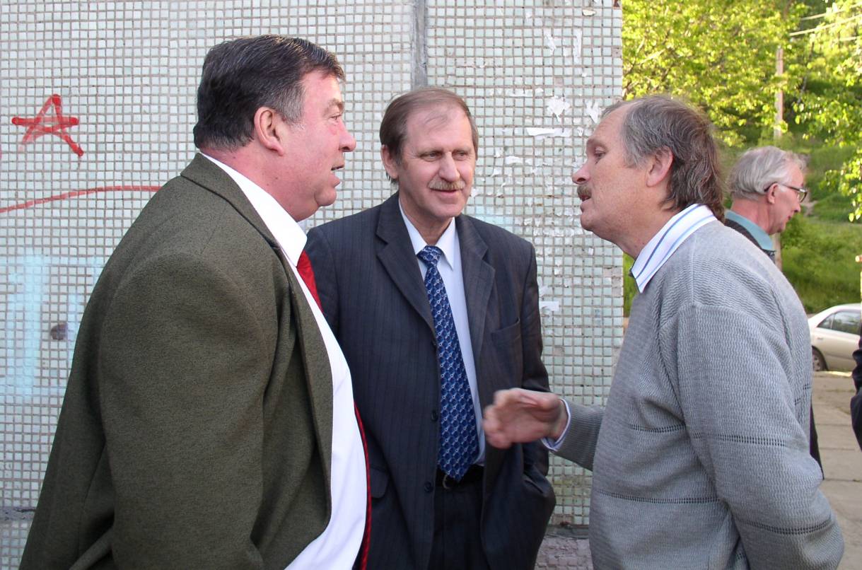 Слева направо: Геллер Ю.И., Лукиных В.Ф., и Мысливец С.А. на праздновании 50- летия лаборатории молекулярной спектроскопии Института физики им. Л.В. Киренского Сибирского отделения Российской академии наук (ИФ СО РАН), 2006 года. Красноярск.
