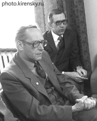 Директор Института физики им. Л.В. Киренского Сибирского отделения Академии наук СССР (ИФ СО АН СССР) Александров Кирилл Сергеевич (слева) и заместитель директора по научной работе Института физики Овчинников Сергей Геннадьевич. Фото 1983 года