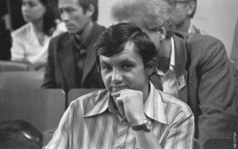 Панкрац Анатолий Иванович (на переднем плане), сотрудник лаборатории резонансных свойств магнитоупорядоченных веществ Института физики им. Л.В. Киренского Сибирского отделения академии наук СССР (ИФ СО АН СССР), на Всесоюзной конференции по аморфному магнетизму, организованной и проведенной Институтом физики в 1986 году в г. Дивногорске (Красноярский край).
