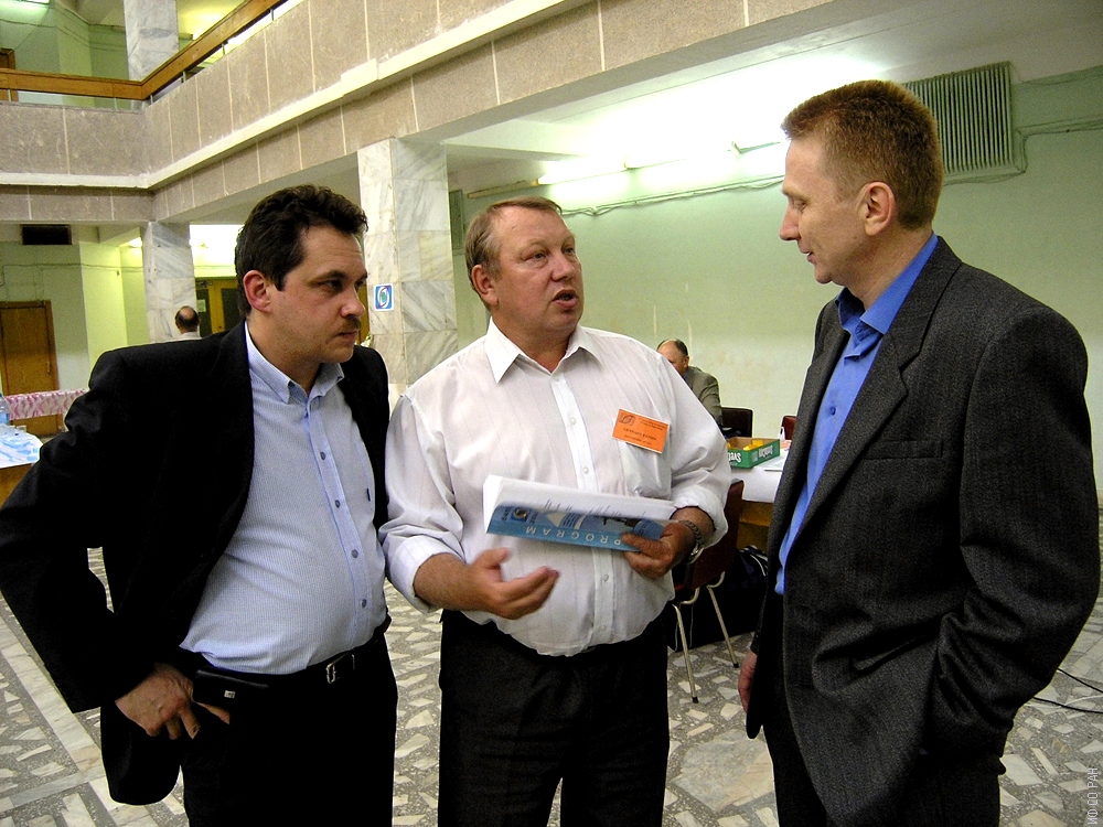 Слева направо: Никита Валентинович Волков, Геннадий Семенович Патрин, Павел Петрович Турчин - участники Евро-Азиатского симпозиума «Прогресс в магнетизме» (ЕASTMAG-2004), Красноярск, 24-27 августа 2004 года.