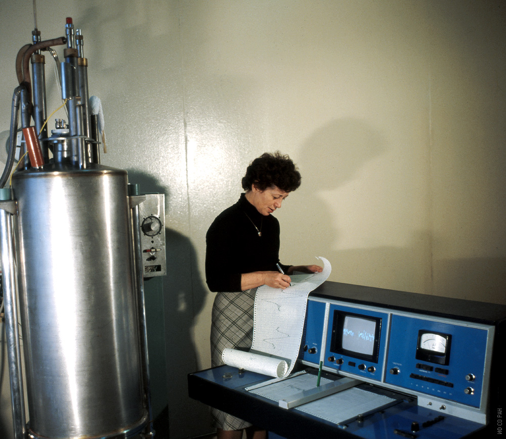 Петраковская Элеонора Анатольевна, старший научный сотрудник лаборатории радиоспектроскопического структурного анализа Института физики им. Л.В. Киренского Сибирского отделения Российской академии наук (ИФ СО РАН), ведет эксперимент на созданном в институте ЯМР-спектрометре, 1998 год.
