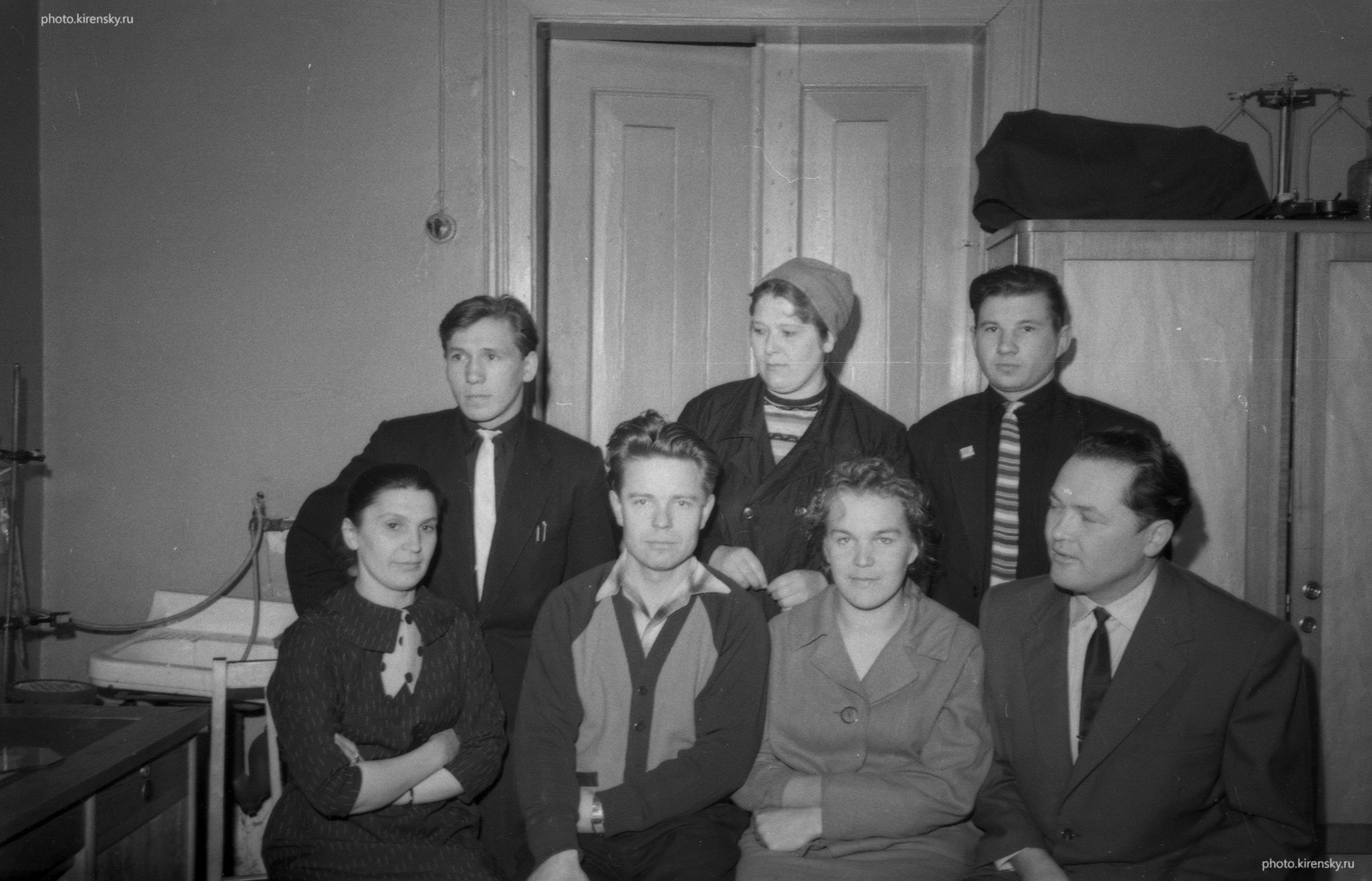 Сотрудники лаборатории молекулярной спектроскопии Института физики Сибирского отделения Академии наук СССР (ИФ СО АН СССР), организованной в 1959 году. В первом ряду сидят (слева направо): А.Л. Юдин, В.Г. Юдина, А.В. Коршунов, М.В. Рябцева, А.А. Коловский. Во втором ряду (слева направо): М.В. Лысяк, Р.И. Подгаецкая, Л.Г. Сидорова, Г.А. Зуйкова, Л.Н. Звегинцева ?. В третьем ряду (слева направо): Д.И.Алешин, А.Ф. Бондарев, Л.С. Соловьев, Ю.С. Русецкий, В.В. Кинд, ? . Фото 1961 года. Красноярск.