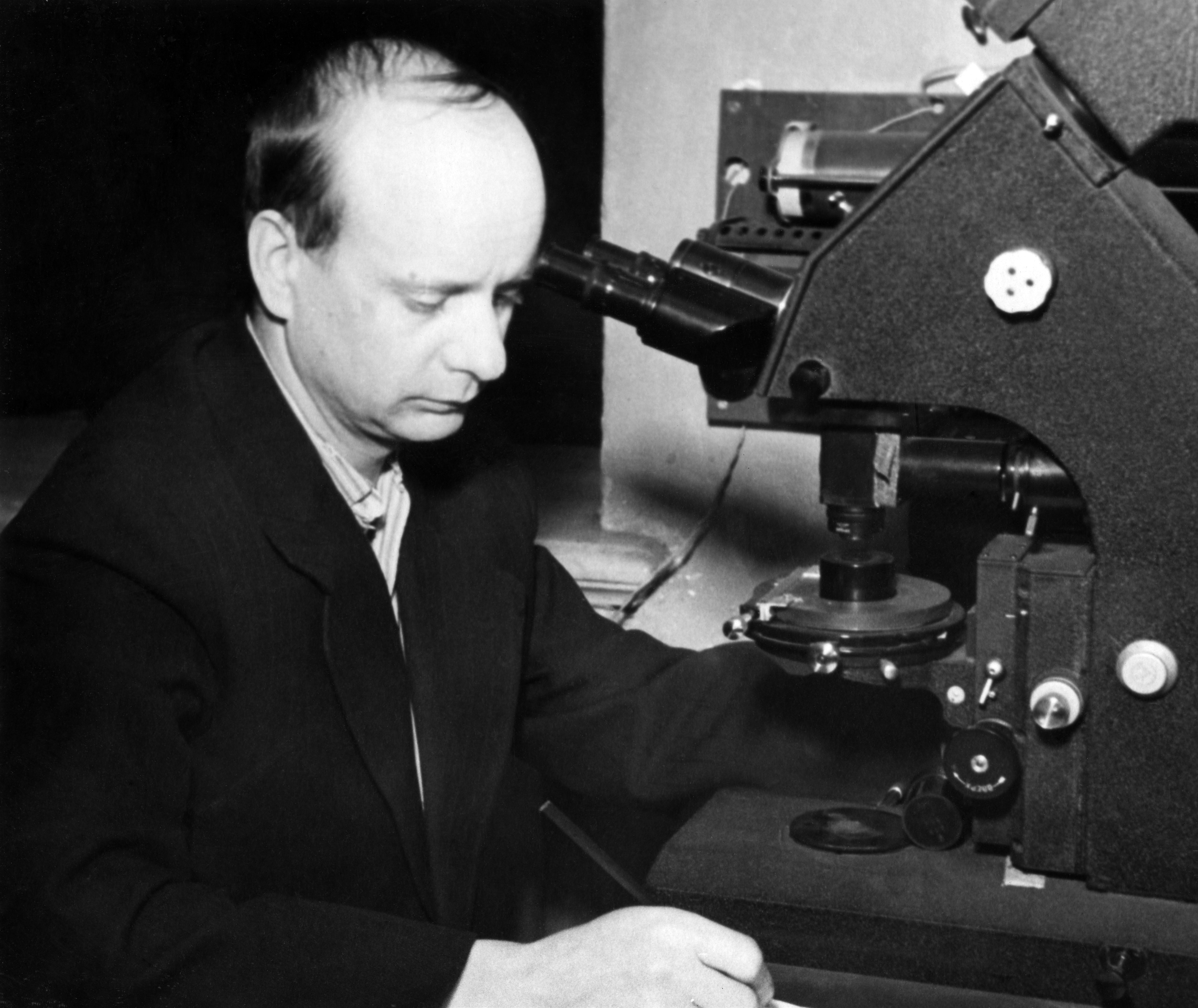 Савченко Михаил Кириллович, старший научный сотрудник лаборатории физики магнитных явлений Института физики Сибирского отделения Академии наук СССР (ИФ СО АН СССР), занимался исследованием границ ферромагнитных кристаллов. Фото 1962 года. Красноярск.