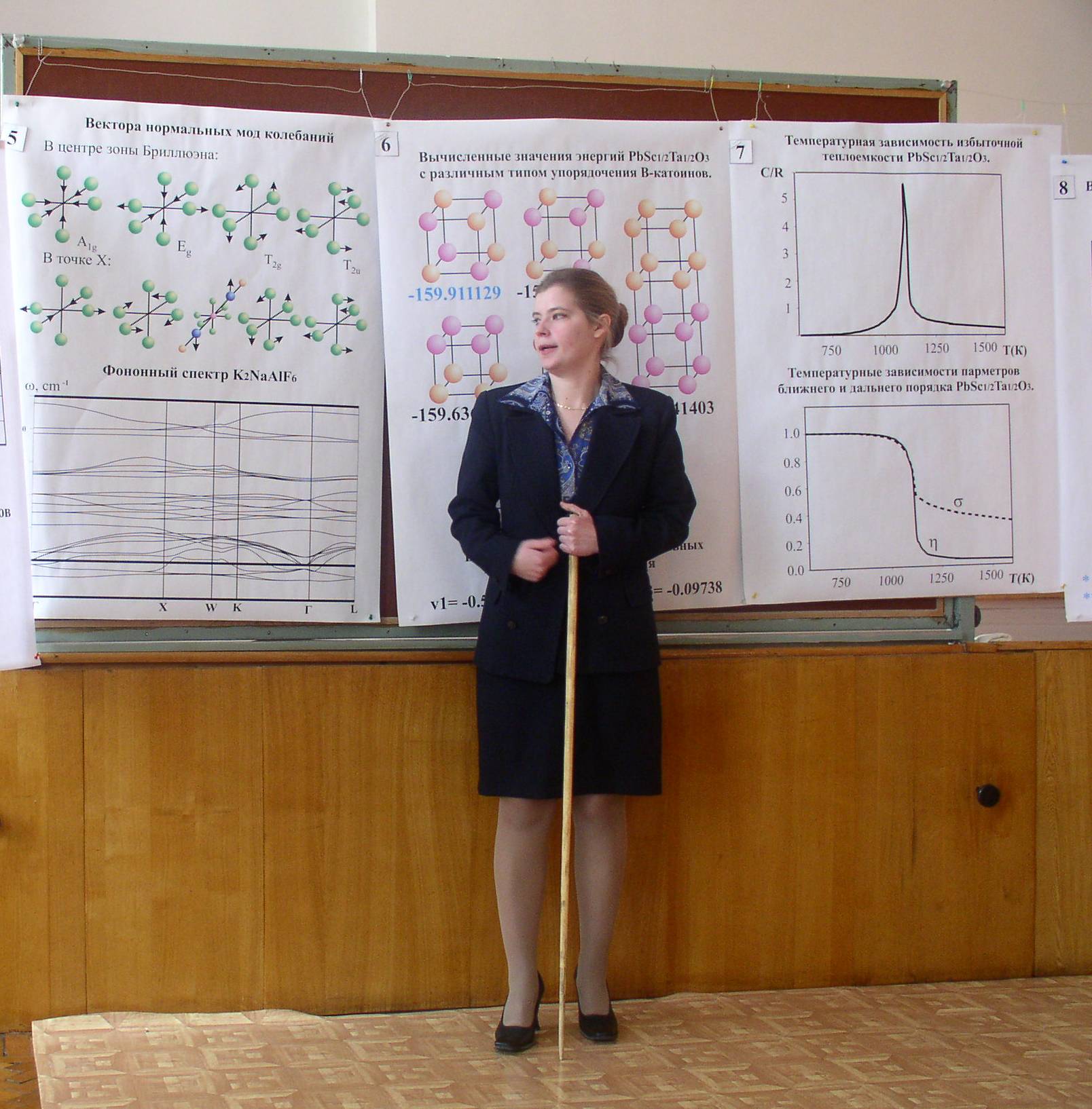 Софронова Светлана Николаевна, научный сотрудник лаборатории кристаллофизики Института физики им. Л.В. Киренского Сибирского отделения Российской академии наук (ИФ СО РАН), на защите своей диссертации на соискание ученой степени кандидата физико-математических наук, март 2004 года. Красноярск.