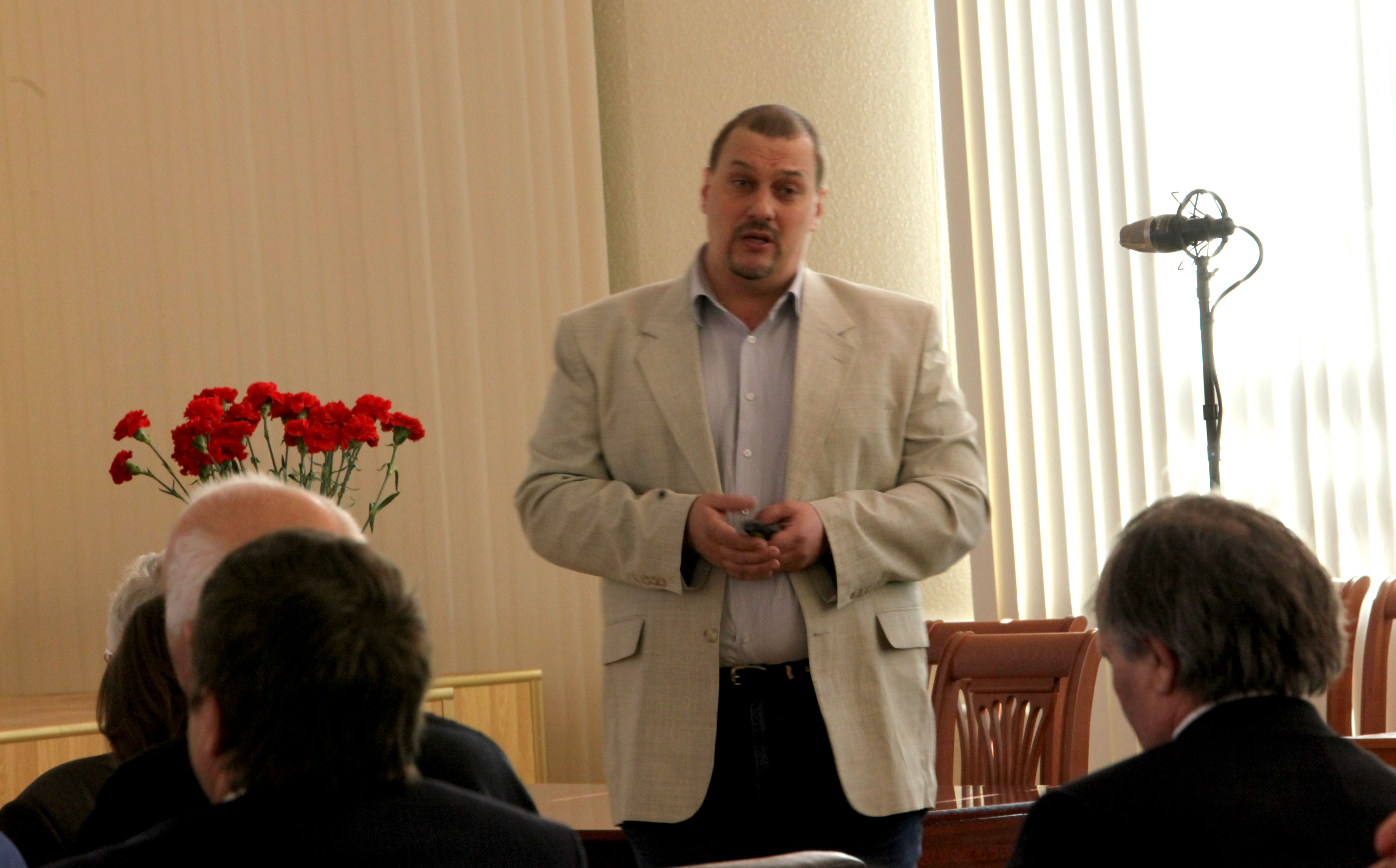 2015 год, 29 мая. А.Э. Соколов, старший научный сотрудник лаборатории физики магнитных явлений Института физики им. Л.В. Киренского Сибирского отделения Российской академии наук (ИФ СО РАН), на заседании ученого Совета института. Красноярск.