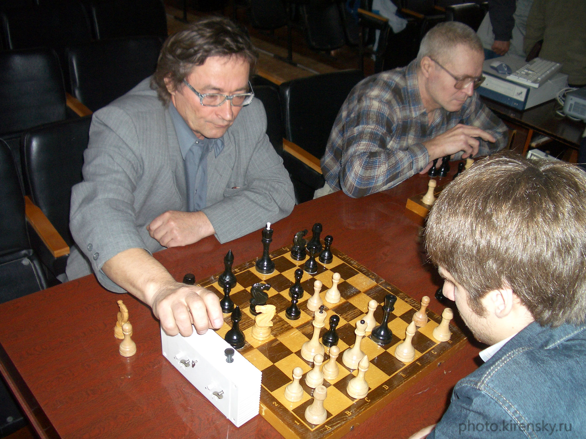 Воронов Владимир Николаевич (слева) и Сысоев Анатолий Михайлович, сотрудники лаборатории кристаллофизики Института физики им. Л.В. Киренского Сибирского отделения Академии наук СССР, участники шахматного турнира институте в 1998 году.