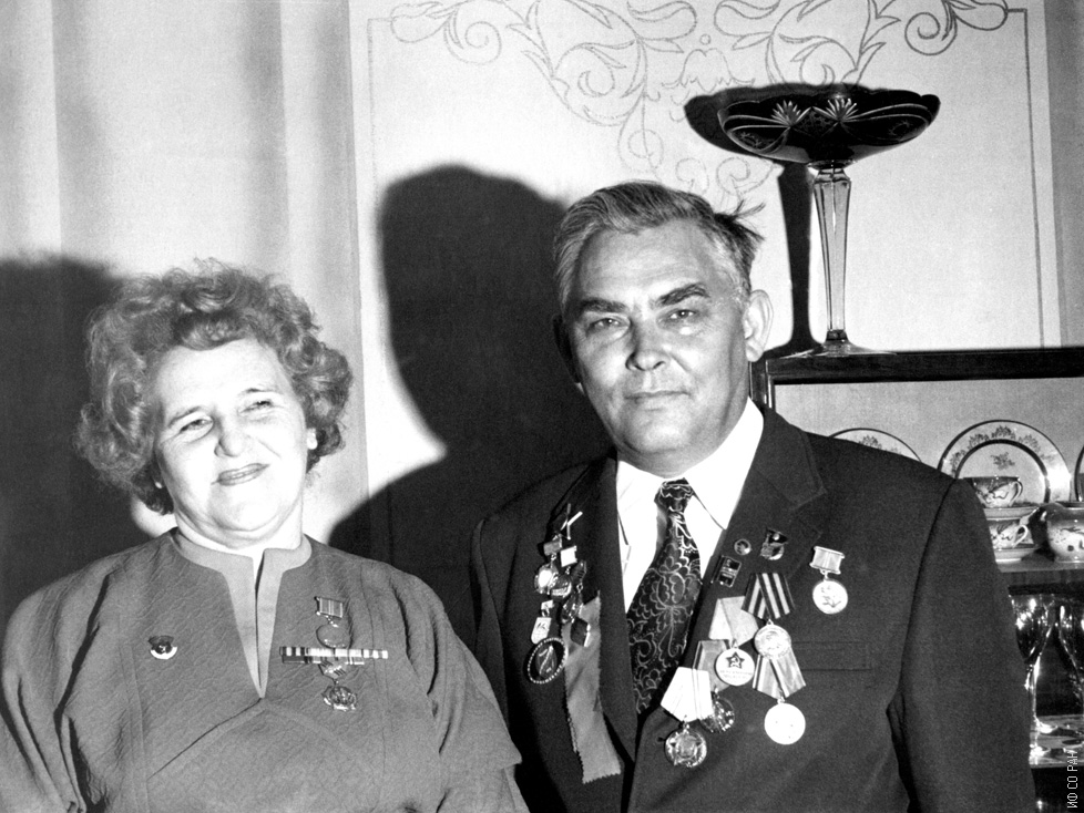 Член-корреспондент Академии наук СССР И.А. Терсков, директор Института физики им. Л.В. Киренского Сибирского отделения Академии наук СССР (ИФ СО АН СССР) с супругой Надеждой Кирилловной в День победы 9 мая 1981 года. Красноярск.