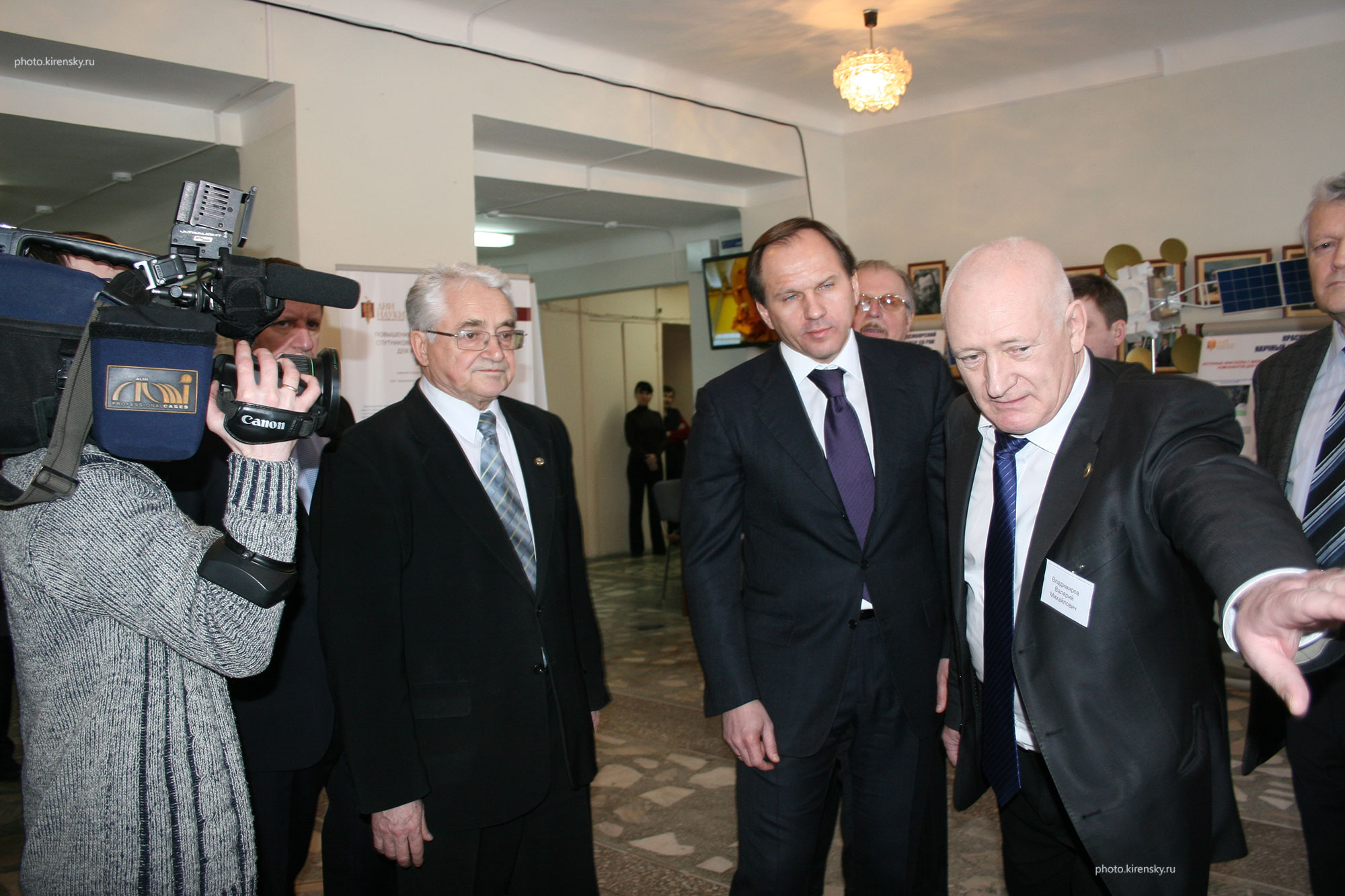 В феврале 2012 года в холле Института физики им. Л.В. Киренского Сибирского отделения Российской академии наук была организована выставка, приуроченная к Дням российской науки. На снимке, слева направо: Шабанов Василий Филиппович, председатель Президиума Красноярского научного центра Сибирского отделения Российской академии наук (КНЦ СО РАН) ; Кузнецов Лев Владимирович, губернатор Красноярского края; рассказывает Владимиров Валерий Михайлович, заведующий отделом радиотехники и электроники КНЦ СО РАН.