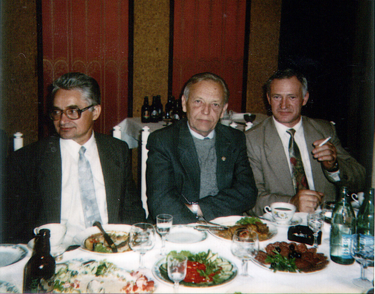 1981 год. Слева направо: Шабанов В.Ф., академик Коптюг А.В. и Владимиров В.М. Обед в Доме ученых во время визита председателя Президиума Сибирского отделения Академии наук СССР Коптюга А.В. в Красноярск.