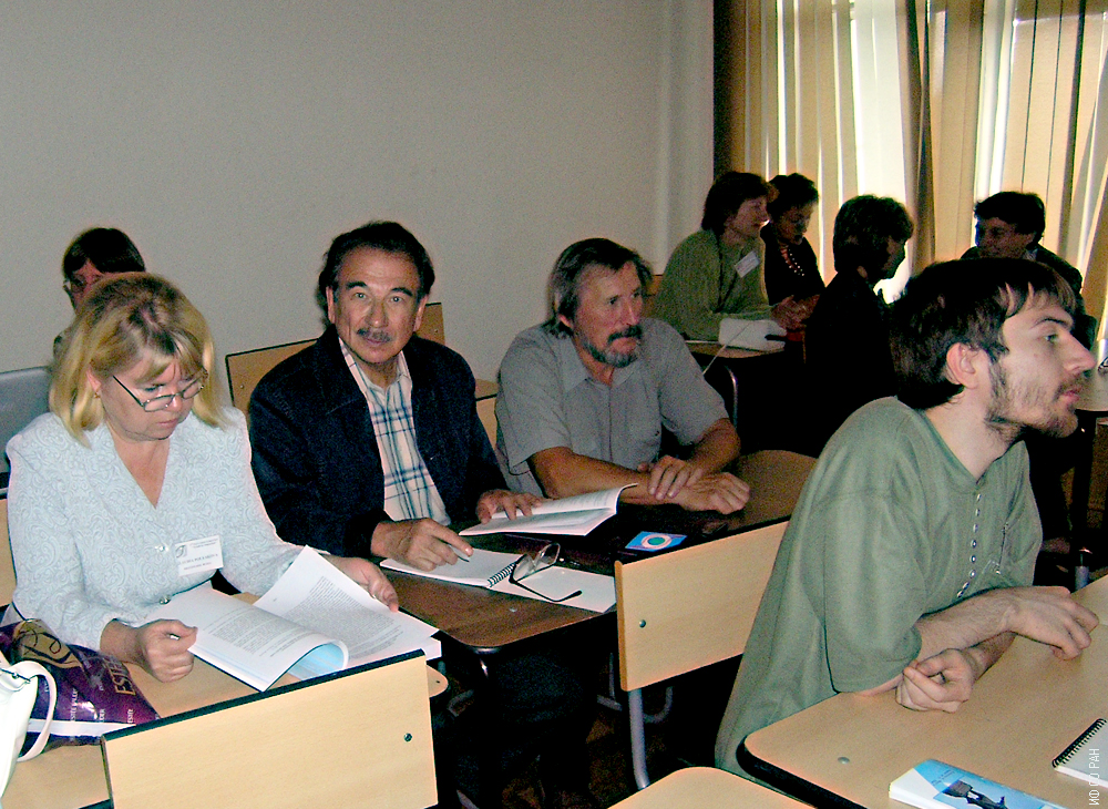 2004 год. 24-27 августа. Участники Евро-Азиатского симпозиума «Прогресс в магнетизме» (EASTMAG-2004), организованного и проведенного в Красноярске. Пленарное заседание. Во втором ряду сотрудники Института физики им. Л.В. Киренского Сибирского отделения Российской академии наук, слева направо: Тугаринов В.И., Фролов Г.И., Панкрац А.И.