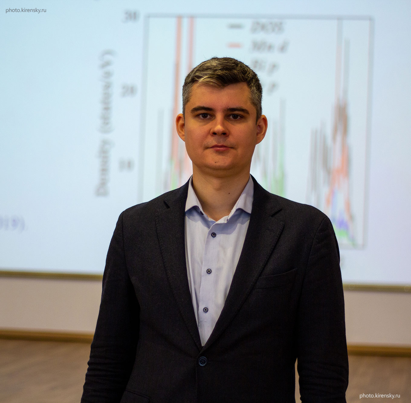 Злотников Антон Олегович, кандидат физико-математических наук, ученый секретарь Института физики им. Л.В. Киренского Сибирского отделения Российской академии наук, выступает на ежегодных научных чтениях памяти академика Леонида Васильевича Киренского, организатора и первого директора Института физики в день его рождения. Апрель 2025. Красноярск.