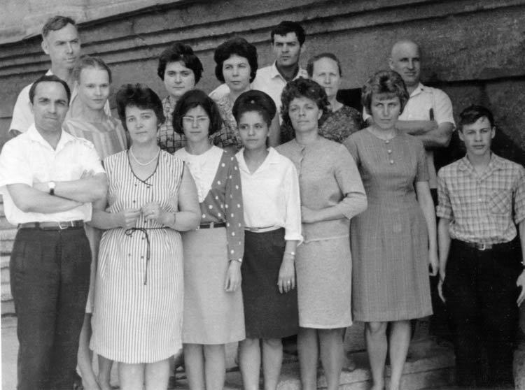 Сибирского отделения Академии наук СССР (ИФ СО АН СССР) в 1967 году. В первом ряду, слева направо: Турко М. Н., Зыкова Т. Ф., Зимина И.Л.,?,?, Устимец А.П, ?. Во втором ряду, слева направо: Золотухин Г.Е., Селиверстова И.Ф., Ярославская Р.М., Зыкова Н.М., Богомолов А.А., ?, Коршакевич И.И. Красноярск.