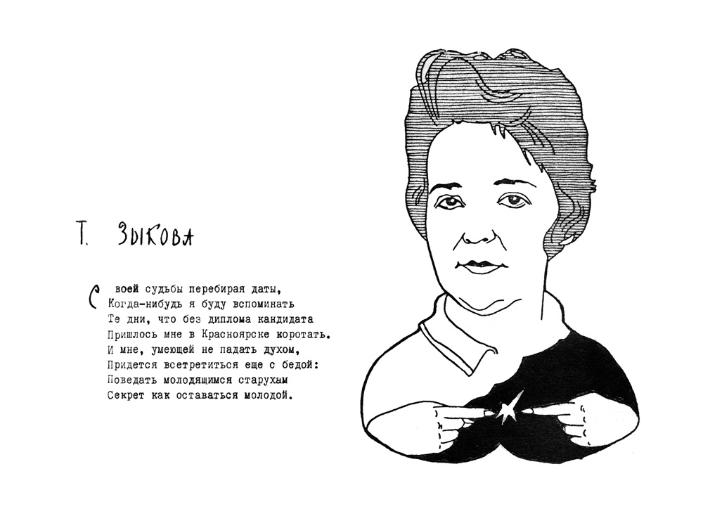 Дружеский шарж из книги шаржей "Музей друзей", первая часть которой вышла в 1967 году. Авторами ее являются научные сотрудники института О.А. Баюков и Н.С. Чистяков. Книга вышла малым тиражом (всего 100 экземпляров) и моментально разошлась среди персонажей книги, сотрудников и была подарком авторов к юбилею института, 1967 год.