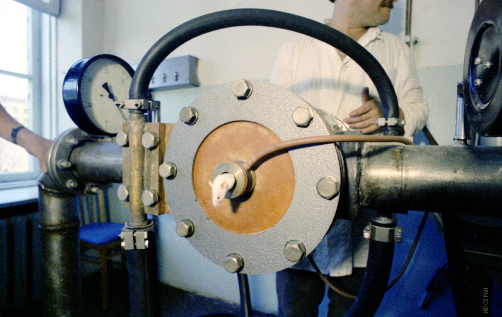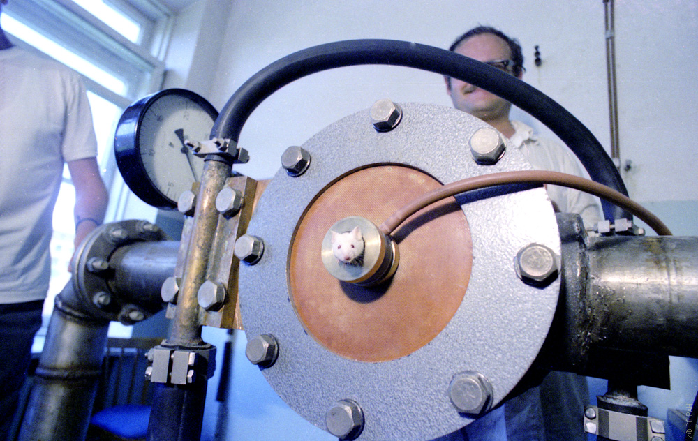 Совместный с Институтом биофизики СО АН СССР эксперимент по влиянию сильного магнитного поля на живой организм, фото 1990 г.