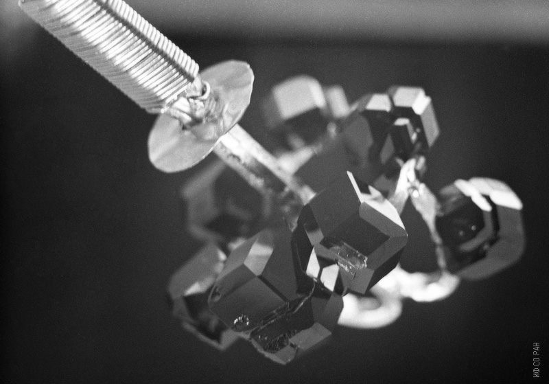 Монокриствллы железо-иттриевого граната, выращенные в лаборатории магнитных материалов на затравках разных форм, 2000 г.