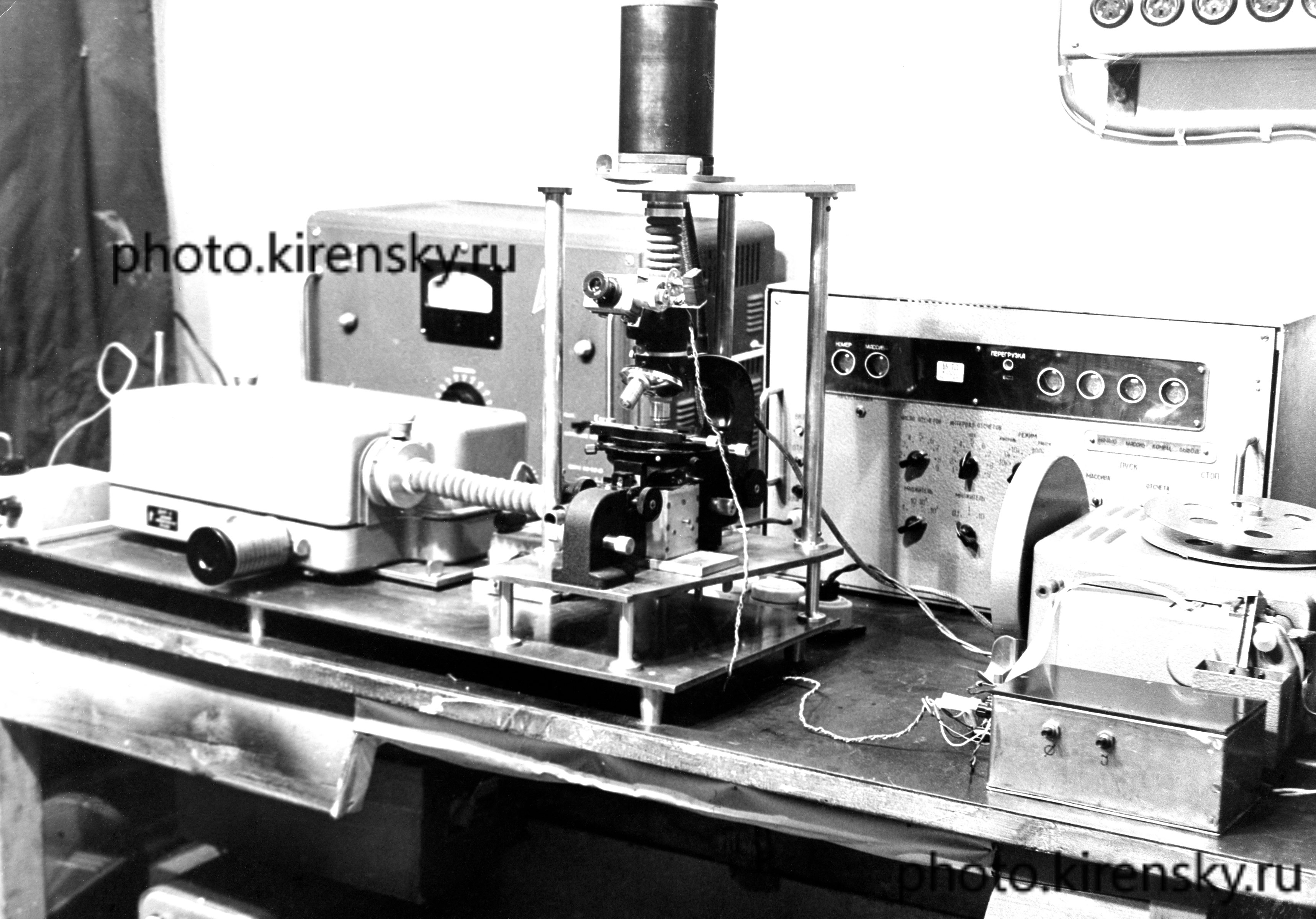 Микроспектрофотометр предназначался для спектрофотометрического анализа отдельных микрообъектов размером до 1 кв. мкм. Прибор разработан в отделе биофизики и изготовлен в экспериментальных механических мастерских Института физики им. Л.В. Киренского СО АН СССР. Авторы: И.А. Терсков, В.В. Спиров, Т.В. Демидова. Красноярск