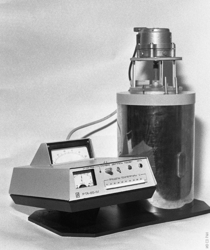 Прибор "сухой кристаллизатор" разработан сотрудниками лаборатории радиоспектроскопического анализа (руководитель А.Г. Лундин) и изготовлен в экспериментальных механических мастерских института в 1979 году.