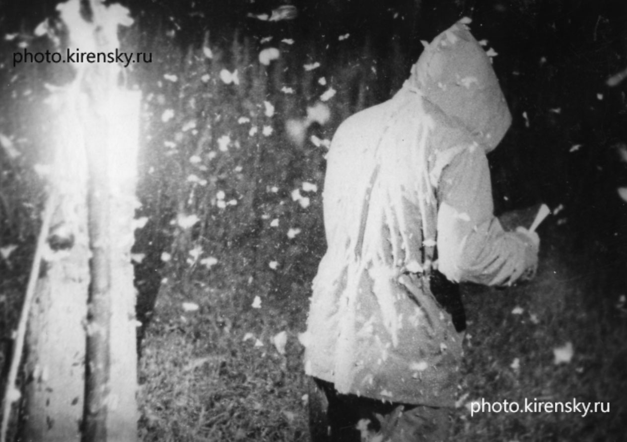 1962 год. Ультразвуковая ловушка бабочек сибирского шелкопряда в действии. Внедрена в леспромхозах Сибири для диагностики распространения вредителей леса. Автор: доктор биологических наук, профессор И.А. Терсков. Лаборатория биофизики Института физики СО АН СССР.