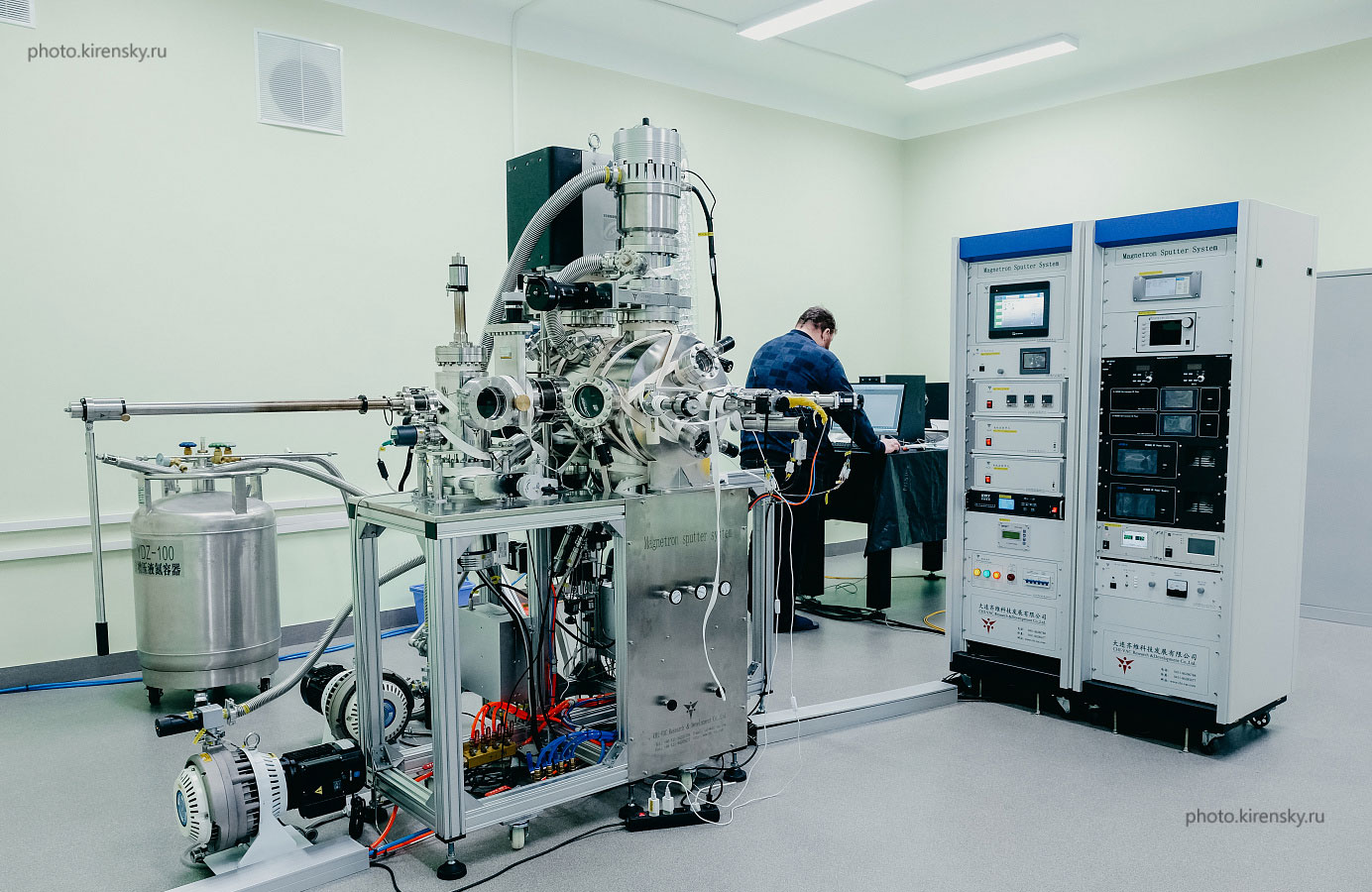 Варкаков Сергей Николаевич, доктор физико-математических наук, ведущий научный сотрудник лаборатории физики магнитных явлений Института физики им. Л.В. Киренского Сибирского отделения Российской академии наук (ИФ СО РАН), у монитора установки, смонтированной и запущенной в Красноярске в работу для синтеза и изучения перспективных наноструктур с контролируемыми свойствами – МАХ-фаз. Установка появилась в рамках Мегагранта, выигранного в 2019 году. «…Далее мы планируем дополнить установку аналитическим оборудованием, которое поможет реализовать такие методики исследования как дифракция медленных электронов, дифракция электронов средних энергий, дифракция отраженных быстрых электронов, электронная оже-спектроскопия и спектроскопия характеристических потерь энергии электронов. Ожидается, что в итоге будет создана установка международного уровня, которая позволит в едином цикле получать и in situ исследовать данные структуры», – отметил Сергей Николаевич. Фото 2021 года.