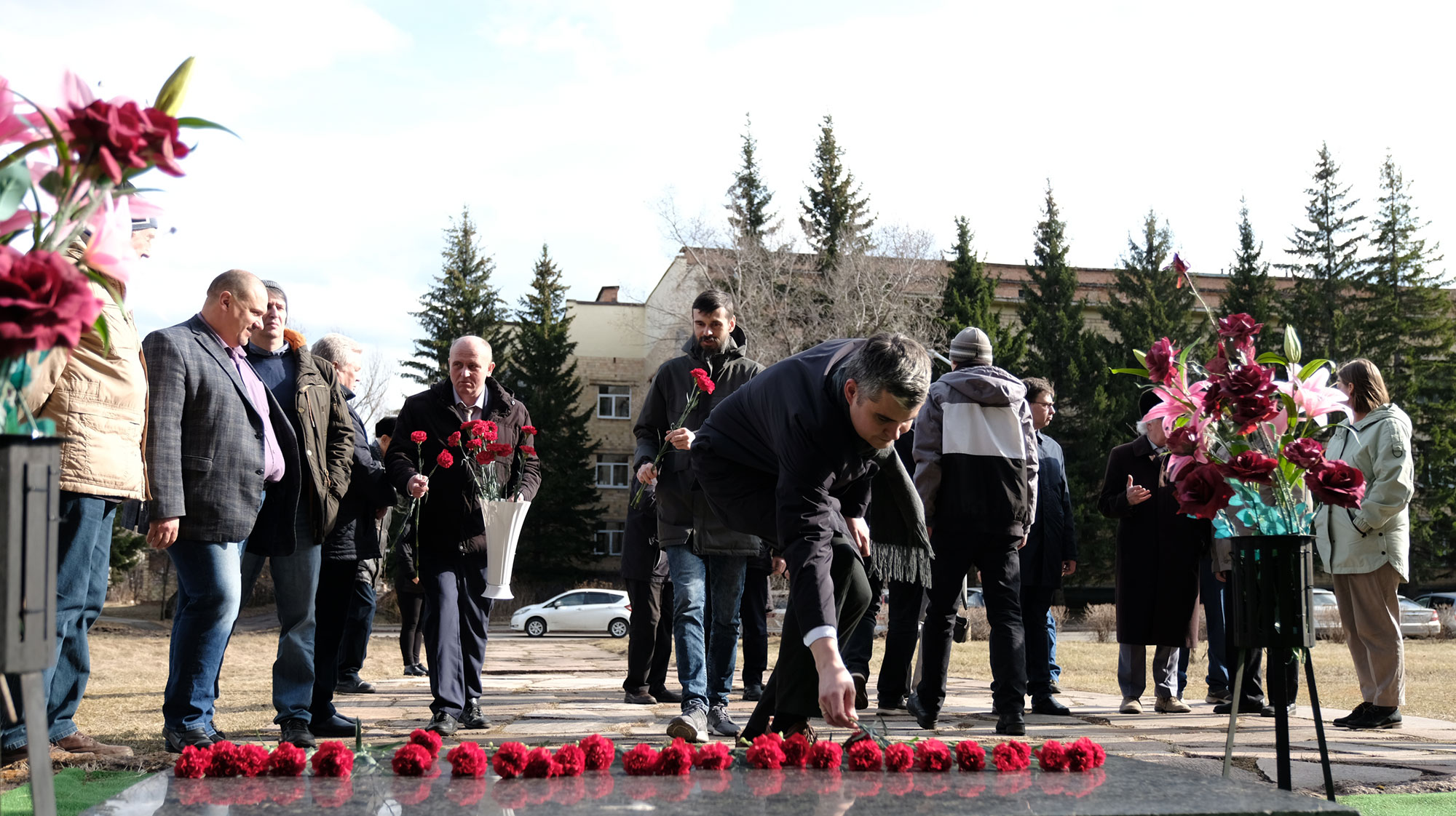 Возложение цветов на могиле Леонида Васильевича