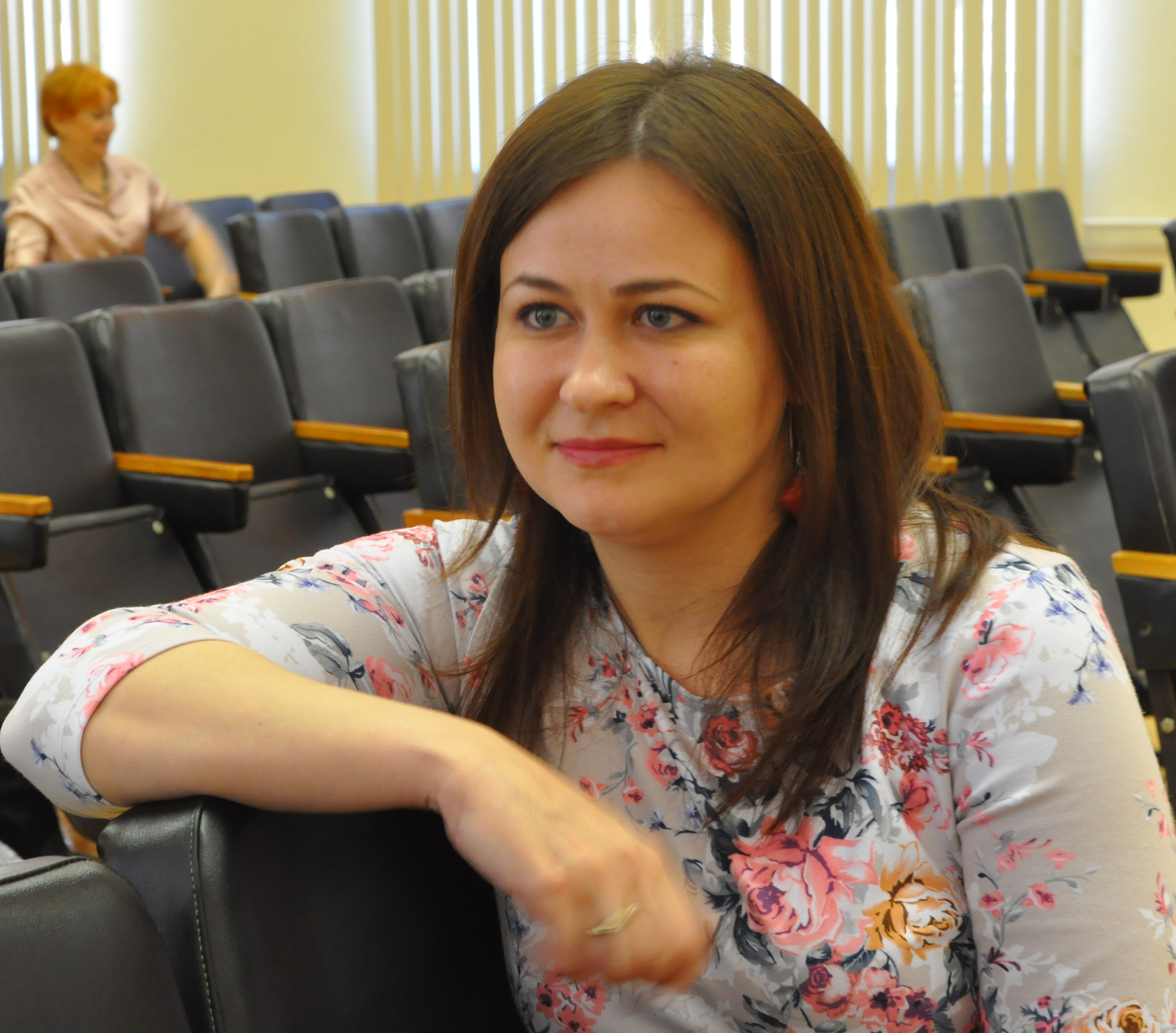 2015 год, 8 мая. Ю. В. Пястолова в конференц-зале института, перед началом концерта, посвященного 70-тию Победы в Великой Отечественной войне (1941-1945 гг.)